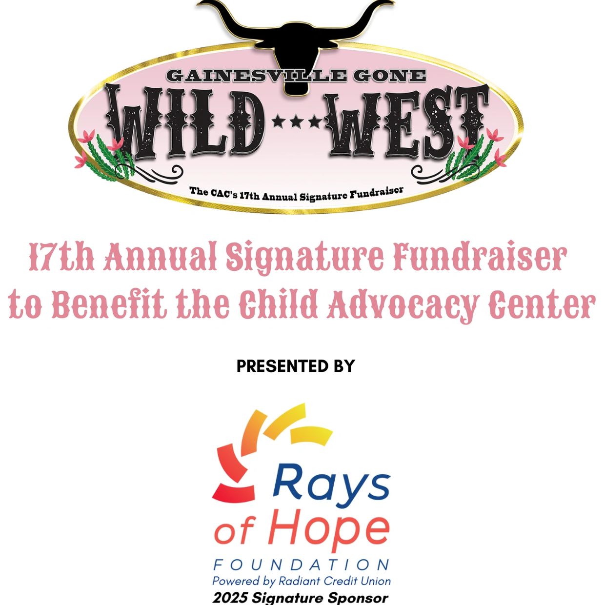 Get your country glam attire ready! Our 17th Annual Signature Fundraiser, Gainesville Gone Wild...West will take place this year on Thursday, October 23, 2025 from 6:00pm to 9:30pm at the beautiful Santa Fe River Ranch, doors open at 5:30pm. We are looking forward to a fun night filled with fringe and lace, a sit-down dinner, drinks, live music, live and silent auction, and the debut of our newest CAC video! We hope you'll join us to support the important services that take place at the Child Advocacy Center every day and to reflect on the impact made, not just the past year...but over the past 25 years! This year is a special year as we celebrate President & CEO Sherry Kitchens' 20th Anniversary with the CAC!